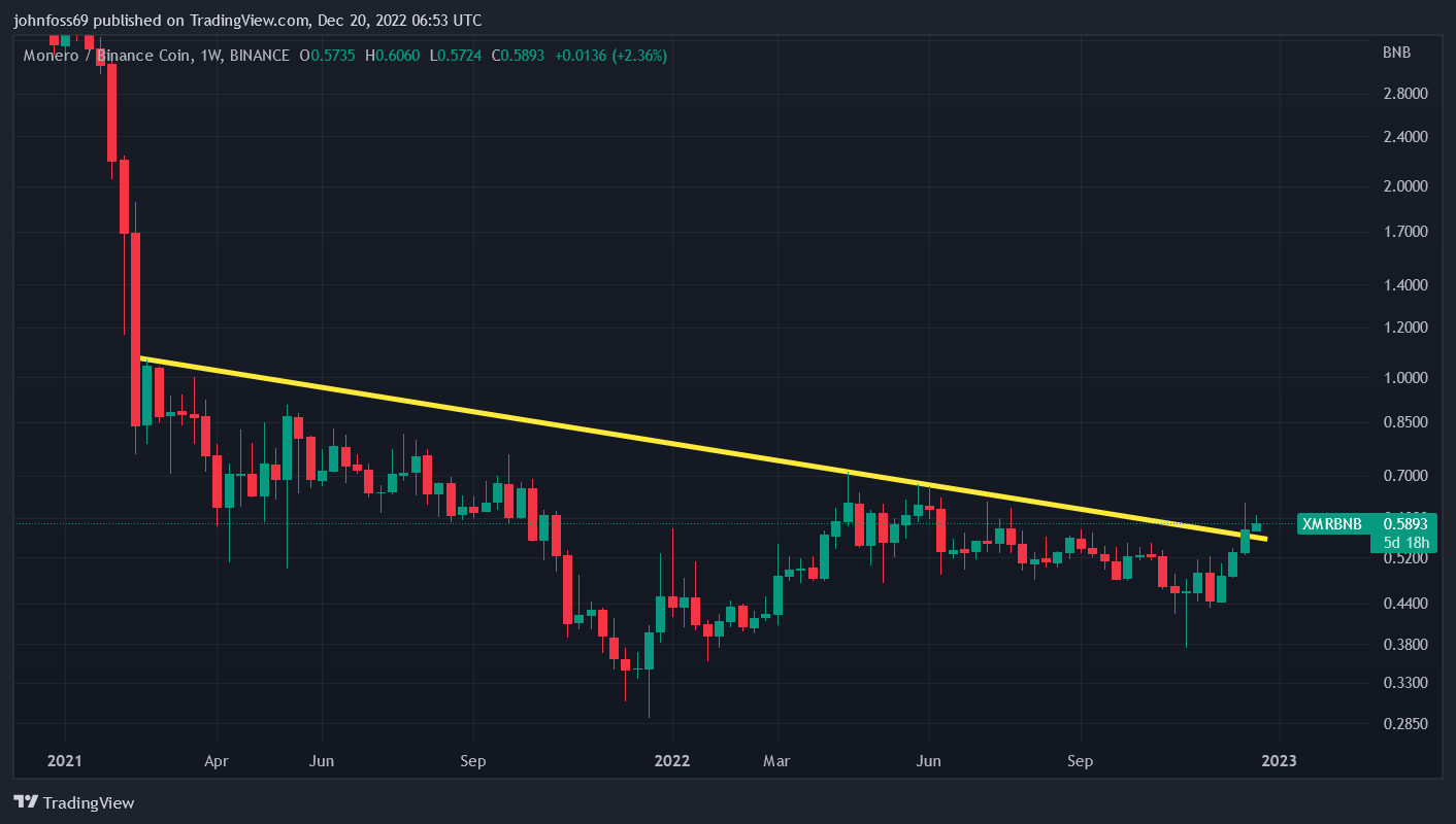 While most coins have been outperforming BNB his week given the non-positive Binance speculation, the XMR/BNB breakout has been noticeable.