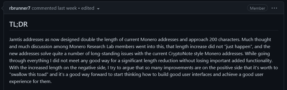While Seraphis and Jamtis are great developments for the future of Monero, there are still some issues being worked on that have been put forward for community feedback. This includes the implications of Jamtis’ longer Monero addresses, and the effect this will have on things such as hardware wallet compatibility. Read more about it here or here.