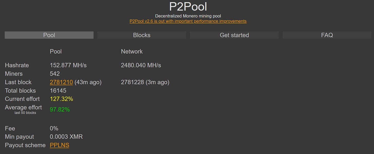 SChernykh recently released P2Pool v2.6. Version 2.6 provides a range of different updates such as a new compact share broadcast format, stricter checking of sidechain shares, and other bug fixes. Check out this post to upgrade or learn more.
