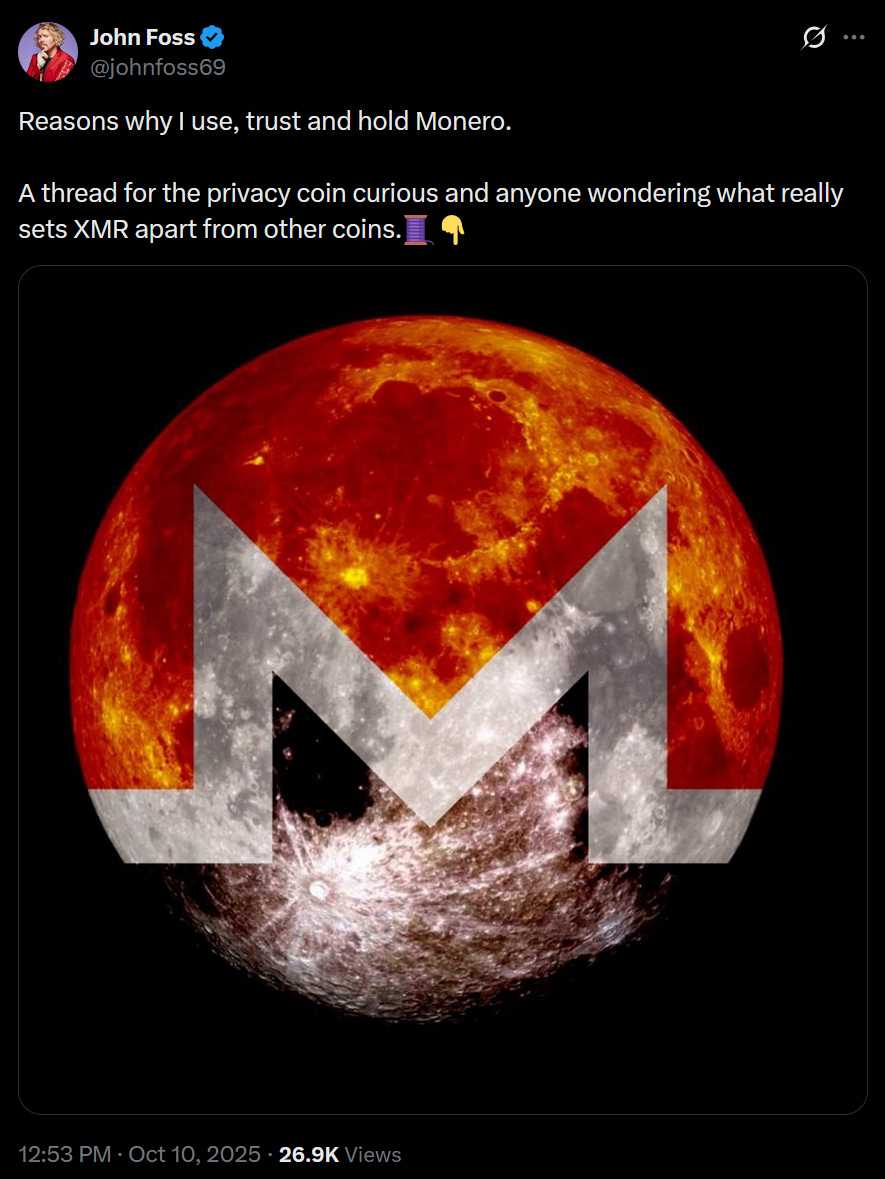 Curious what sets Monero apart from the rest? Check out this X thread titled “Reasons why I use, trust and hold Monero. A thread for the privacy coin curious and anyone wondering what really sets XMR apart from other coins.”