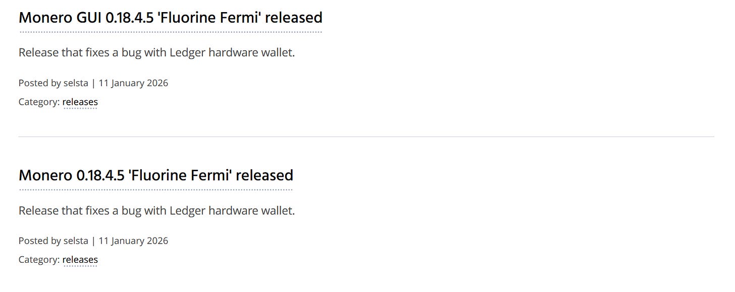 In case you missed it, Xenu’s Anti Moonboy News 56 dropped just before the end of the year with a packed rundown of privacy and crypto news. The episode covers the Samourai Wallet situation, ongoing attacks on privacy tech, Monerotopia 2026, FCMP++ scaling progress at the Monero Research Lab, the return of spy node monitoring, major Monero donations to free software, and plenty of sharp commentary along the way. It’s a solid catch up if you want a broad snapshot of where things stood heading into 2026.