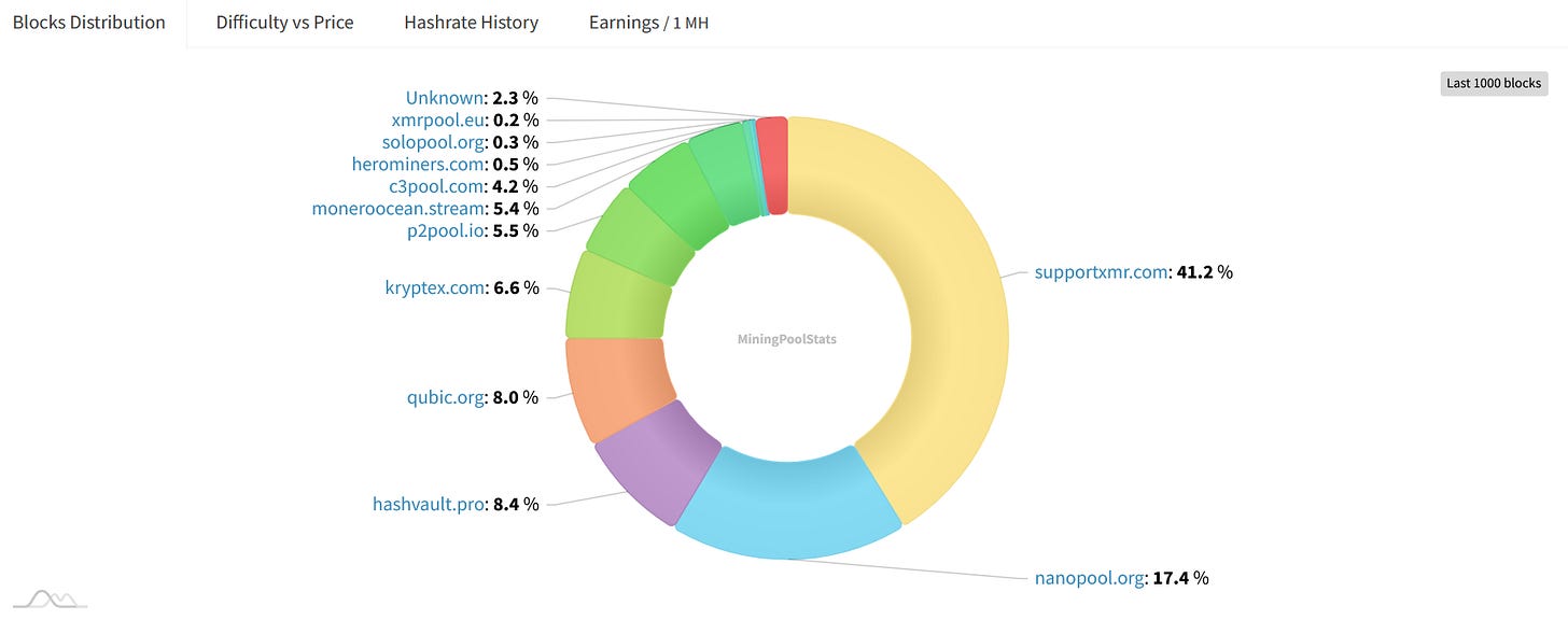 Monero Mining Pools Hashrate Distribution: