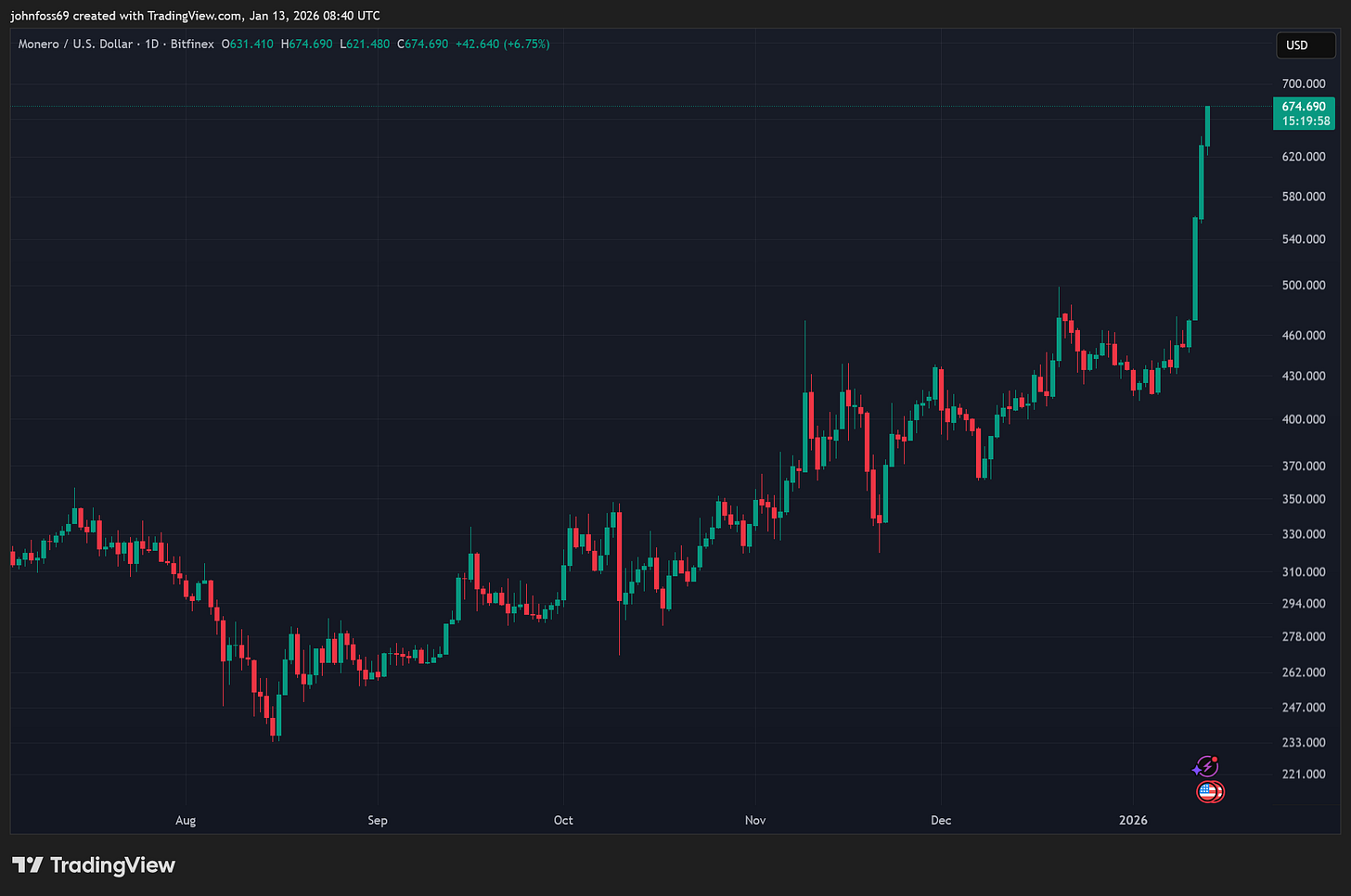 XMR/USD Price: $674
