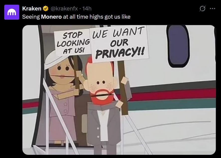 If you enjoy the newsletter and want more of this content, shout me a beer by donating some spare Monero you didn’t lose during your boating accident. I’m completely independent and rely solely on donations, with no sponsorship. A massive thank you to everyone who supports my work!
