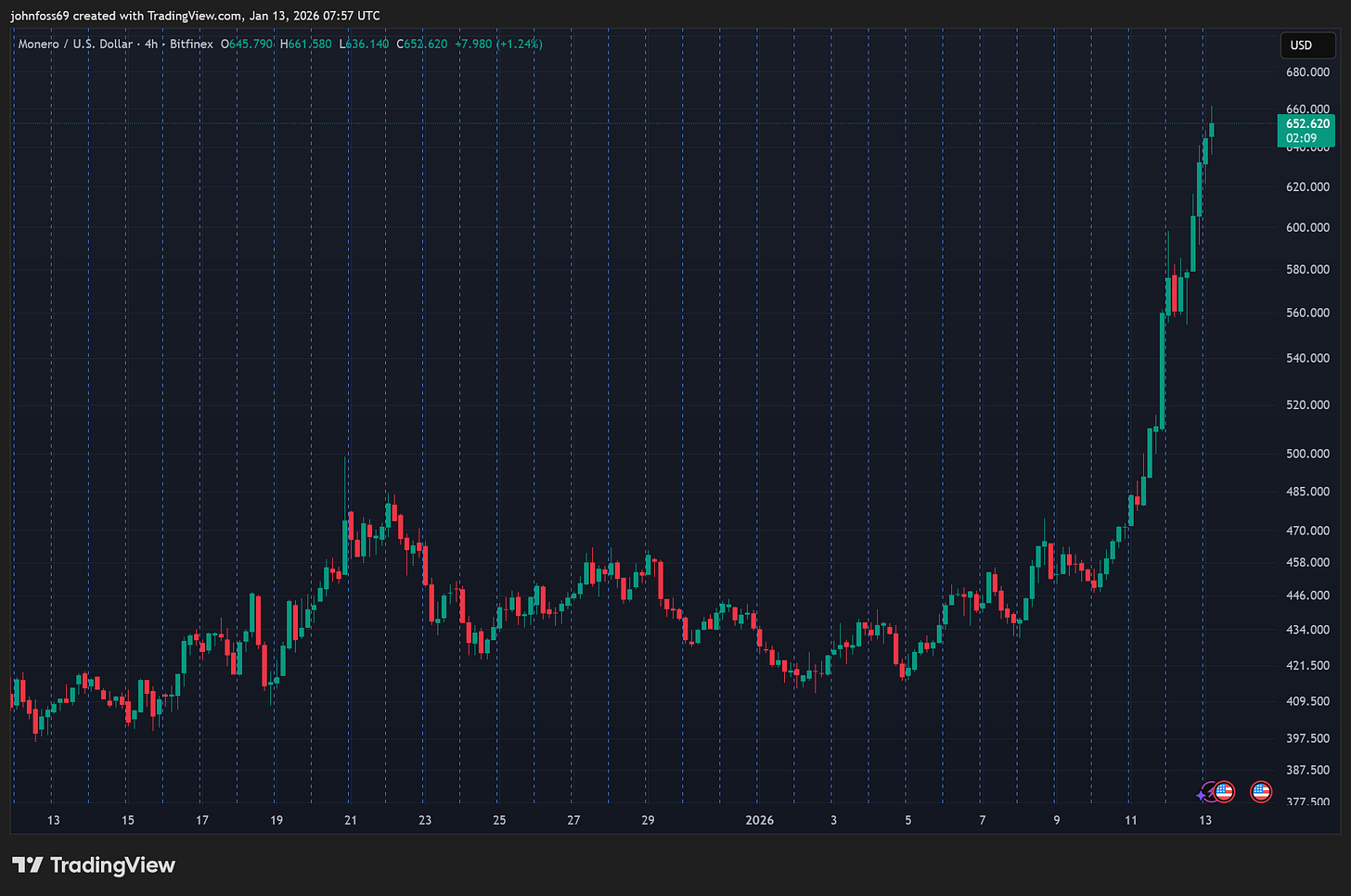 Monero hit new all time highs this week, recently peaking at over $660 USD.