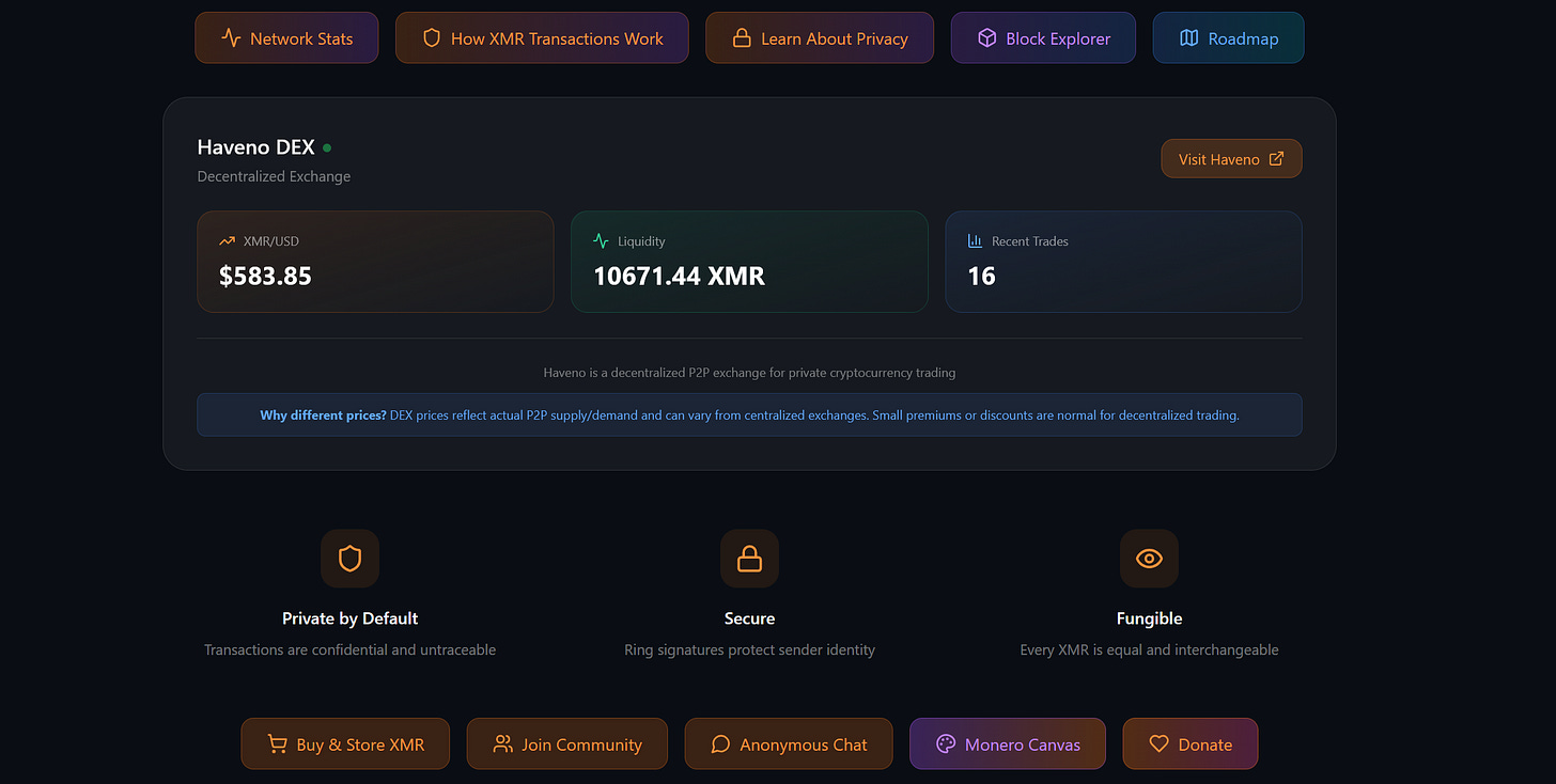 If you want a clean way to track Monero data in real time or simply learn more about it, check out monero-pulse.com. The site pulls together live XMR pricing, market stats, network information, and Haveno DEX data into a fast updating dashboard.