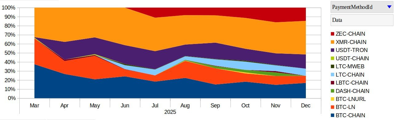Nym shared its 2025 payment stats for NymVPN, showing Monero as the most used payment method, ahead of Bitcoin, USDT, Zcash, and Litecoin. The data highlights how strongly privacy minded users continue to gravitate toward Monero when paying for real world privacy tools.