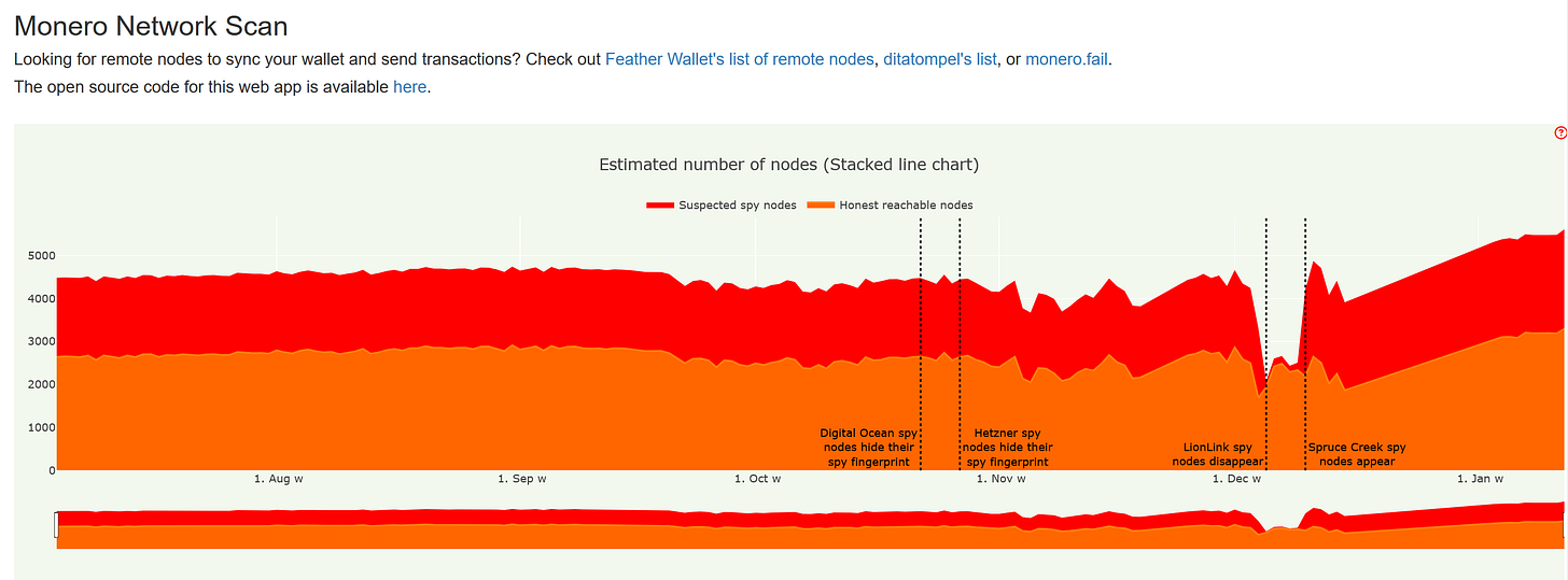 Rucknium has confirmed that the updated Monero network monitoring site moneronet.info is now live and working. The refreshed webapp follows recent fixes to the network scanner and database issues, and better integrates the finalized spy node ban list once signatures are complete. The tool gives users clearer visibility into remote Monero nodes and network health, supporting ongoing efforts to strengthen privacy and resistance to surveillance.