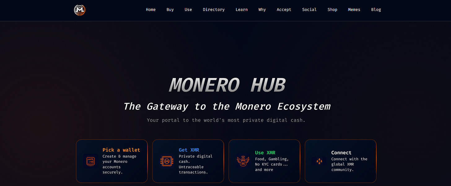 Mav announced the launch of XMR Hub, a new website aimed at making Monero easier to understand, use, and discover. The project aims to bring buying, storing, learning, and community resources into one clean place. They are actively seeking feedback for an upcoming v1.1 update.