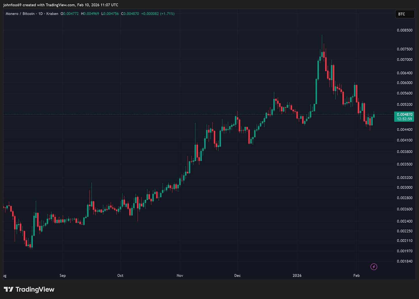 XMR/BTC Price: 0.004870 BTC