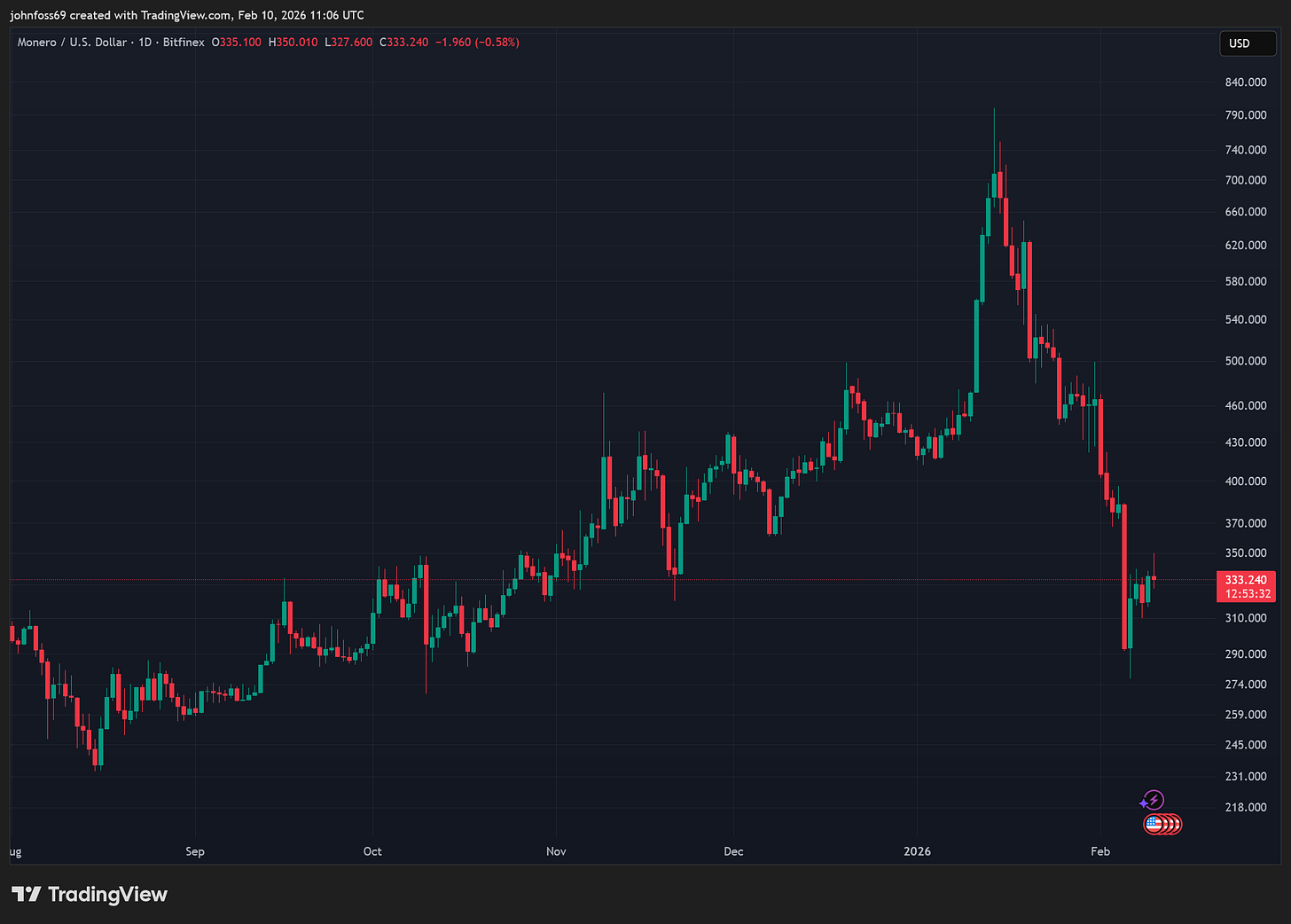 XMR/USD Price: $333