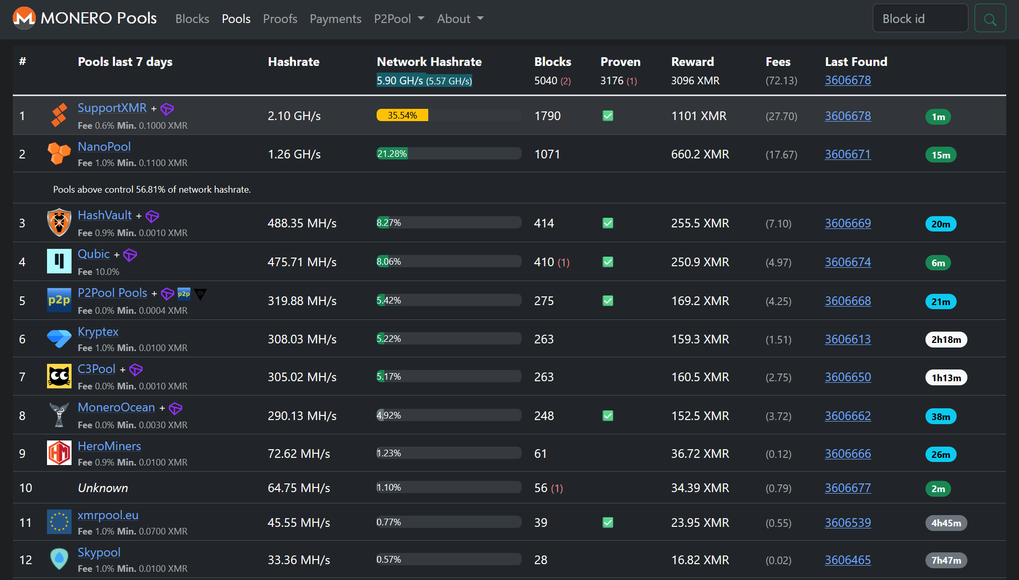 Monero Network Hashrate: 5.95 Ghash/s
